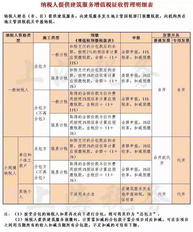 国家税务总局日前发布《关于发布<</span>纳税人跨县(市、区)提供建筑服务增值税征收管理暂行办法>的公告》(国家税务总局公告2016年第17号)。上海税务对该办法进行了梳理,制作了《纳税人提供建筑服务增值税征收管理明细表》。