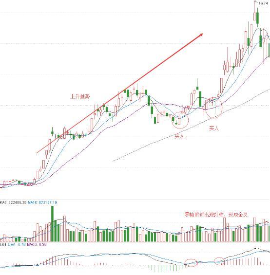 最后看30、60分钟MACD,若在零轴以上并且走出来的是第一根或是第二根红柱子,买入(在集合竞价前买入)。若你错过机会了,还有一个机会:看分时图图的F1成交单,看9点30分的单子是买的还是卖的,如果是买的,并且大于开盘前的那笔单,那这只个股还可以去买。