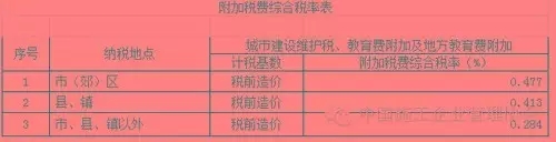 附加税费:"营改增"后附加税费按下表计算。