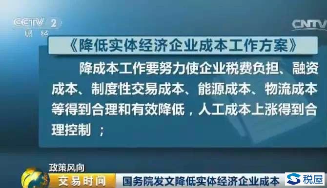 总理多次强调的降低实体经济企业成本将迎来多个实招,硬招!日前,国务院印发《降低实体经济企业成本工作方案》,从降低企业税费负担、融资成本、制度性交易成本等8个方面推出30项措施助企业降成本。怎么降?如何减?具体措施有哪些?