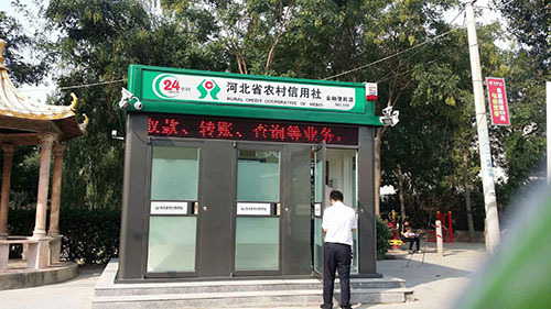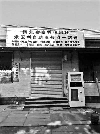 张风绵的"代办点"是永安村的三间民房,门口悬挂着"河北省农村信用社永安村自助服务点一站通"的牌子,牌子上面罗列着服务点可以办理的业务,包括办理各大银行存取业务、转账业务、全国联网、支养老保险金、刷信用卡、收移动联通固定电话话费、电费、投资理财业务等。