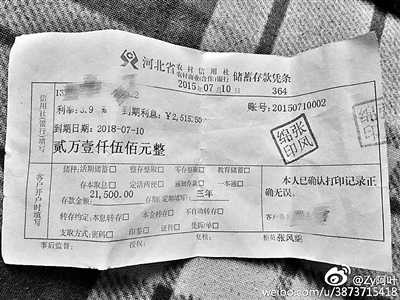 村民张存辉表示,这个"代办点"是由1980年代的"信用站"延续下来的,大约在2008年左右由张风绵接手。张风绵收到存款后,会为村民开具一张"河北省农村信用社存款凭条",上面会显示账号、存款金额、利率、到期利息等信息。