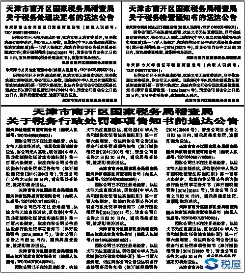 2013年11月7日,周口市地方税务局在周口日报通过公告方式向267户纳税人送达了《责令限期改正通知书》(周地税契限改【2013】01号)。该公告明确指出因受送达人众多,且属于同一送达事项,所以采取公告方式。