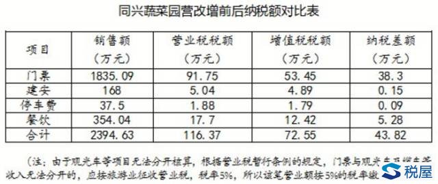 这样算下来,同样的收入,缴纳营业税和增值税,同兴蔬菜园的税负大不相同,详情见同兴蔬菜园营改增前后纳税额对比表。