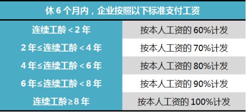 职工疾病或非因工负伤连续休假在6个月以内的,企业应按下列标准支付疾病休假工资: