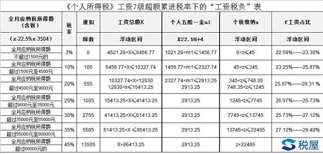 杭州市《个人所得税》工资7级超额累进税率的工资税负表