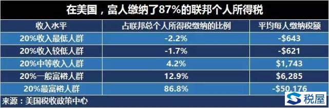 更重要的是,调节收入是个税的重要功能,通俗来说就是要"削富济贫"。以美国为例,2015年,美国收入最高的20%人群,贡献了全美个人所得税的86.8%,而收入最低的20%人群,只缴纳了全美个税总额的0.8%。如果中国个税税率只大幅降低最高税率,少降其他级距的税率,中低收入者承担的个税占个税总收入的比例还会上升,这岂不是"劫贫济富"?