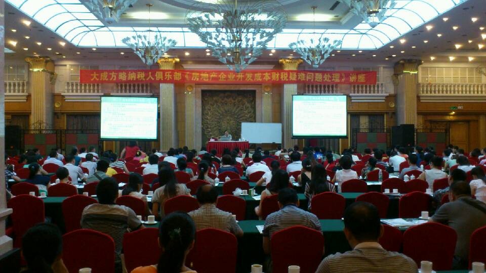 2013年6月26—27日,杨文国老师应邀为应邀为大成方略纳税人俱乐部广西分公司210名房地产企业会员讲解房地产开发成本疑难财税处理,详尽、缜密、抽丝剥茧、层层推进的讲课风格,熟练流畅自信准确的现场互动答疑赢得了与会学员的普遍好评。