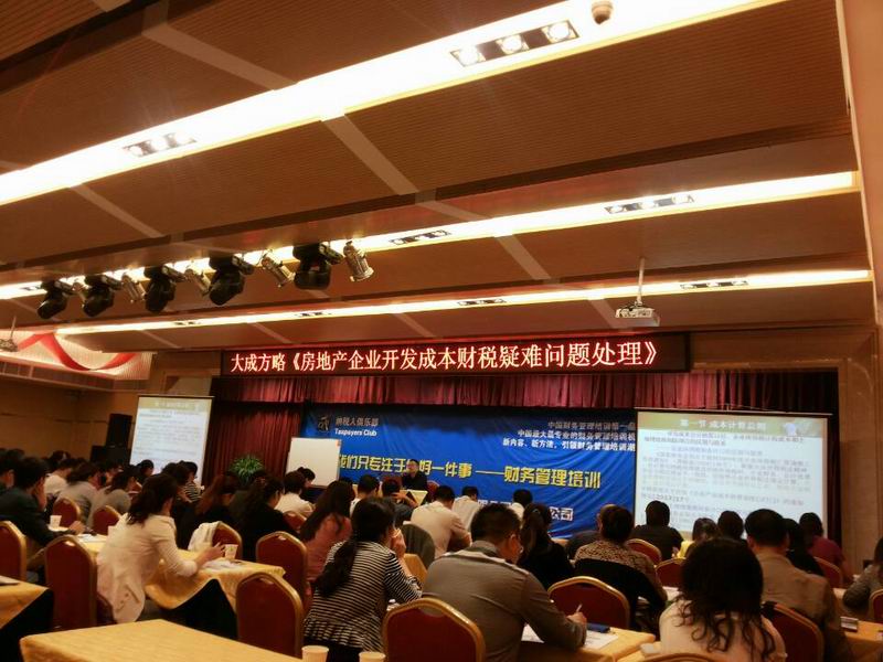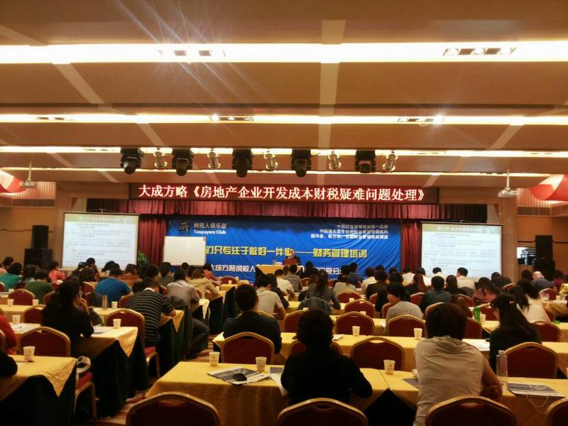 2013年9月18日至19日,本网专家杨文国老师应大成方略纳税人俱乐部有限公司宁夏分公司邀请,为其房地产业会员150人进行了“房地产企业开发成本财税疑难问题处理”主题讲解。就众多房地产企业容易遇到的开发成本财税疑难问题进行讲解,帮助广大房地产企业财务人员正确理解和掌握房地产企业开发成本的相关政策和操作要点,降低纳税风险,避免不必要的纳税负担,学员们普遍反映,授课老师知识面丰富,讲解的方略和方法具有实用性,答疑准确及时彰显业务水平厚度极深。学员听后开阔了思路,增长了见识。