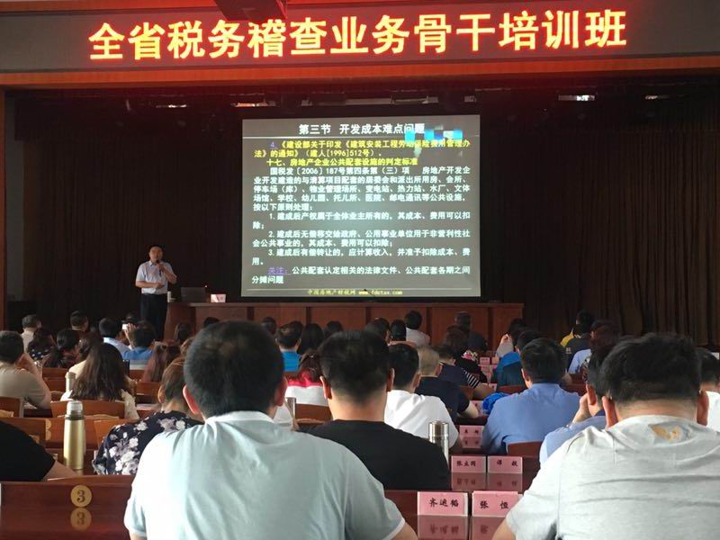 2018年6月9日至6月10日,杨文国老师应邀在北戴河的河北省地税局培训基地为河北省地方税务局稽查局举办的全省税务稽查业务骨干培训班讲解土地增值税清算实务及疑难,学员反映,点评政策站位高远,剖析精准深入,案例生动幽默,思路逻辑严谨。