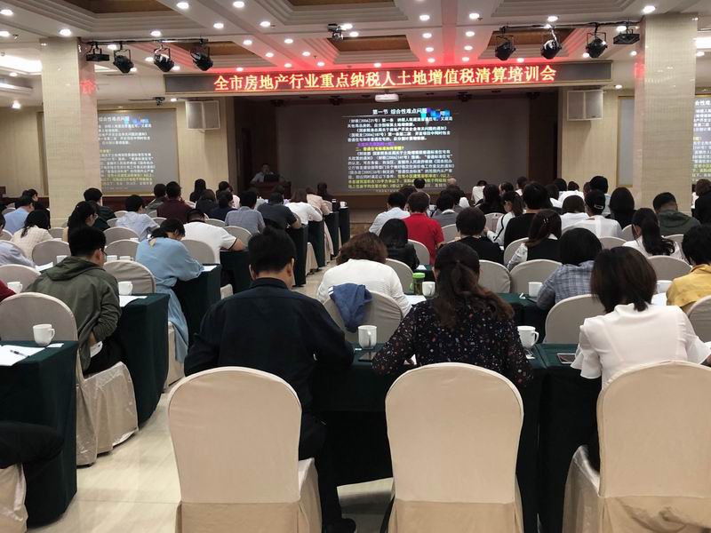 2019年9月12日,河北博睿宏税务师事务所所长杨文国应邢台市税务局邀请,在上午为邢台市房地产行业120家2019年度需要进行土地增值税清算的房地产企业财务人员就土地增值税清算过程中具体政策把握口径进行了讲解,在下午为邢台市全市税政和管理分局业务骨干就土地增值税清算审核要点进行了讲解。