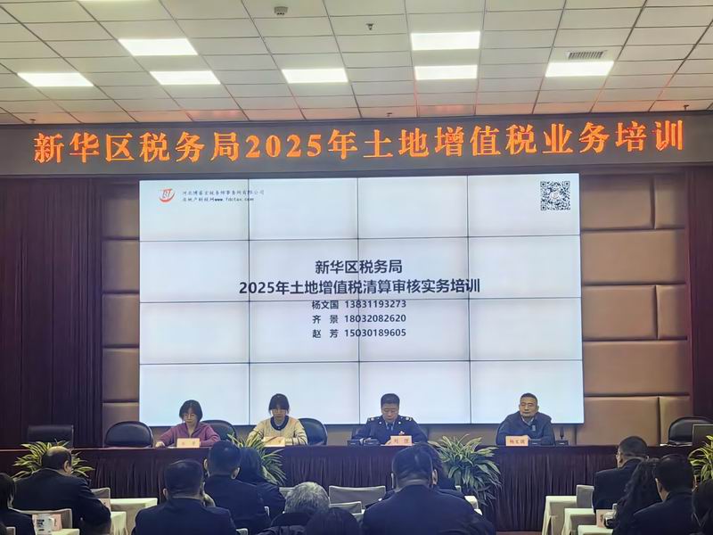 2025年2月8日,河北博睿宏税务师事务所有限公司所长杨文国、项目经理齐景和赵芳受邀为石家庄市新华区税务局进行了一场专题实战土地增值税清算复核培训,全程展示了清算审核的重点、难点和EXCEL公式运用。
