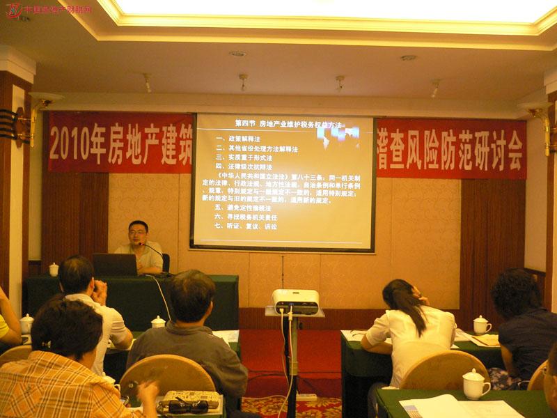 中国房地产财税网于2010年7月28日—29日在南宁新华大酒店举办了2010年房地产建筑安装业最新税收政策解析及稽查风险防范研讨会。本网财税专家杨文国老师全面介绍了房地产及建筑安装业的税务运作,为企业“税”事号脉,消除与会学员日常财税工作和应对稽查工作中的疑惑,为学员2010年顺利通过行业税务稽查保驾护航!
