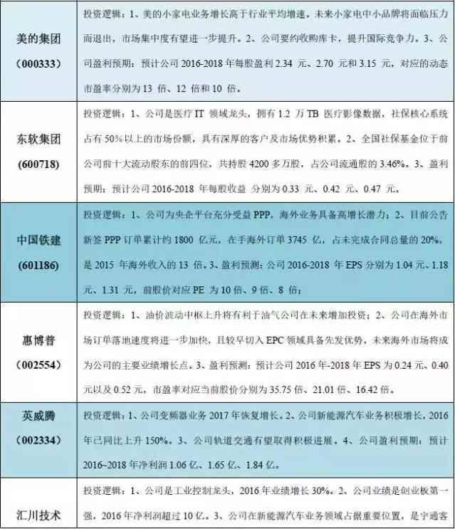 6、2017全年,国资改革概念仍将是不可或缺的重点配置品种。2017年一季度建议投资侧重估值安全的蓝筹股,比如建筑业,二季度宜结合相应政策择机选择机器人、环保、新能源汽车。