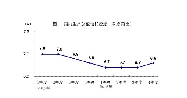 中国2016年GDP为6.7% 四季度GDP达6.8%